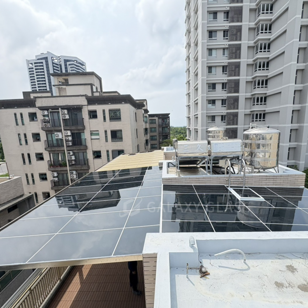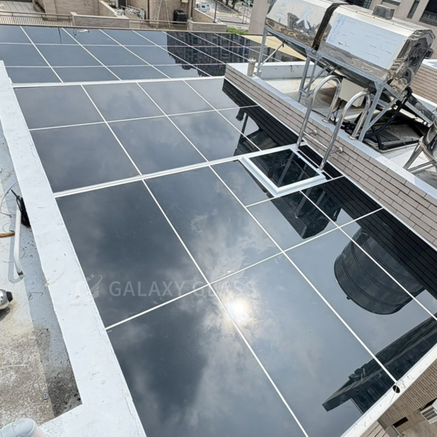 屋主選擇天和「獨家黑玻白膜隔熱玻璃」,以深色調展現俐落外觀,兼具遮陽、隔熱與隱私效果。 黑玻與白膜結合為一體設計,能柔化日光、阻隔紫外線與紅外線熱源,讓空間光線柔和不刺眼,環境更加清爽舒適。 天和玻璃採用「光波動粒子技術」,在隔熱性能與視覺質感上全面升級,打造兼具美感與機能的高質感採光空間。