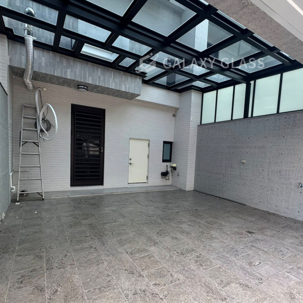 車庫也能享有舒適光線與安全感!屋主選用黑玻隔熱膠合玻璃作為採光罩,打造兼具美觀與機能的停車空間 隔熱降溫:有效阻隔紅外線熱源,車庫保持清爽 抗紫外線:減少陽光對車輛及物品的傷害 柔和採光:黑玻讓光線柔和不刺眼,營造舒適氛圍 無論白天或夜晚,黑玻採光罩都提供理想光線與遮蔽效果,讓車庫成為兼具美感與實用性的空間。