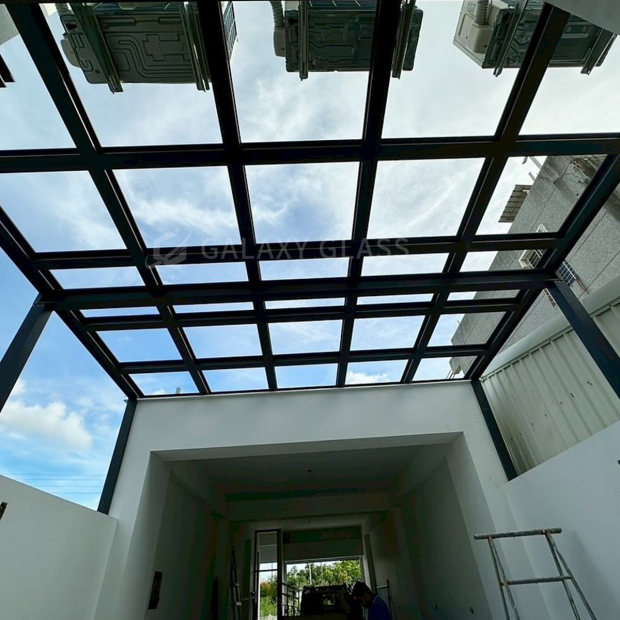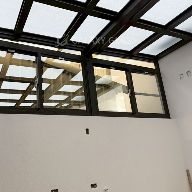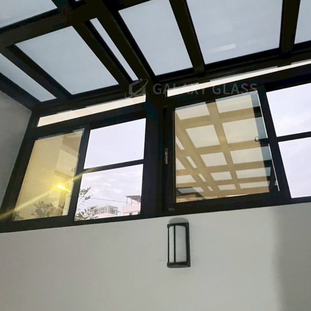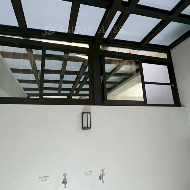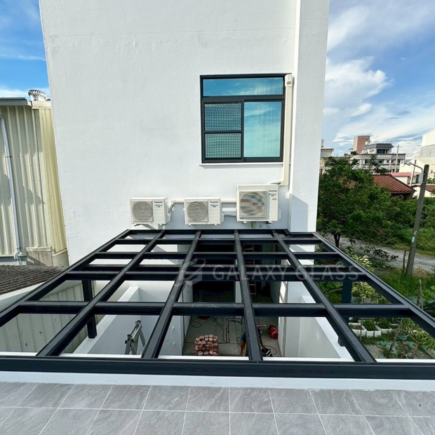 屋主替車庫選用 天和獨家隔熱白膜玻璃(灰玻), 以沉穩色系打造俐落立面,機能與美感一次到位。 灰玻有效降低太陽直射帶來的熱感, 白膜提升遮蔽與隱私,同時保留柔和採光, 讓車庫白天也能明亮不刺眼,空間舒適不悶熱。 採光、隔熱、隱私兼具, 既保護愛車,也讓建築視覺更大氣。